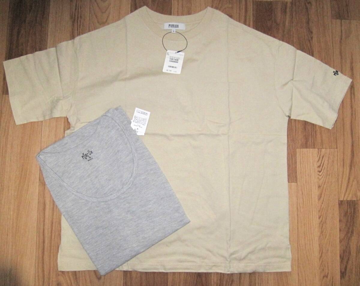 - 新品66%OFF!PUBLUX MENS 半袖Tシャツ & サーマルレイヤードタンクトップ のセット☆カラー:ベージュ×グレー☆サイズ:M