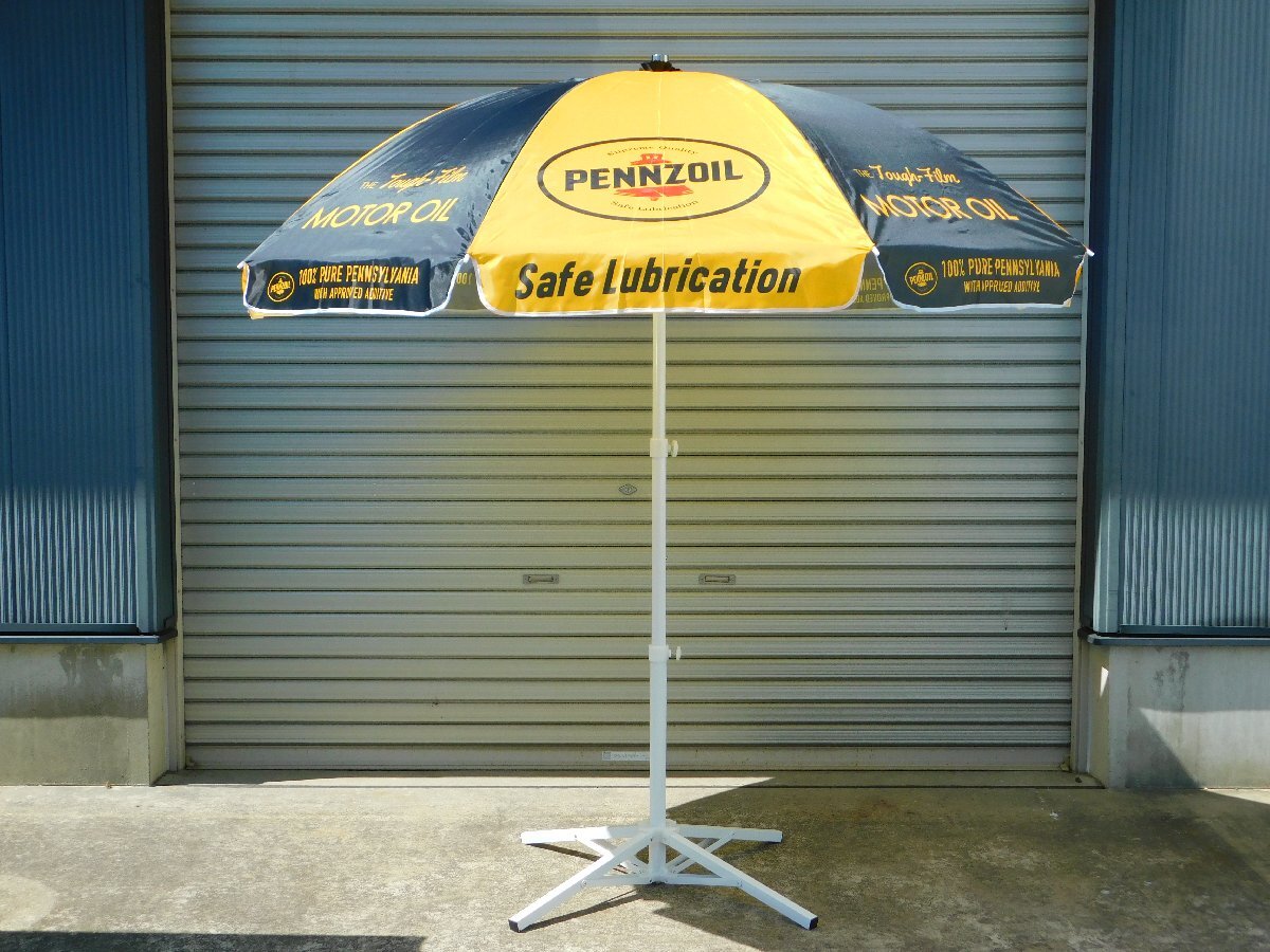 - ◆2点セット◆【PENNZOIL・ペンズオイル】※《パラソル&折りたたみ式スタンド セット》 アメリカン柄 アメリカン雑貨