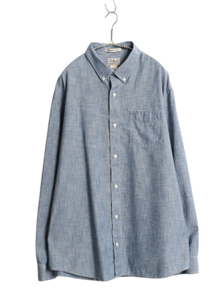 - エルエルビーン シャンブレー 長袖 ボタンダウン シャツ メンズ XL 100% コットン 長袖シャツ アウトドア ポケット付き 無地 大きいサイズ