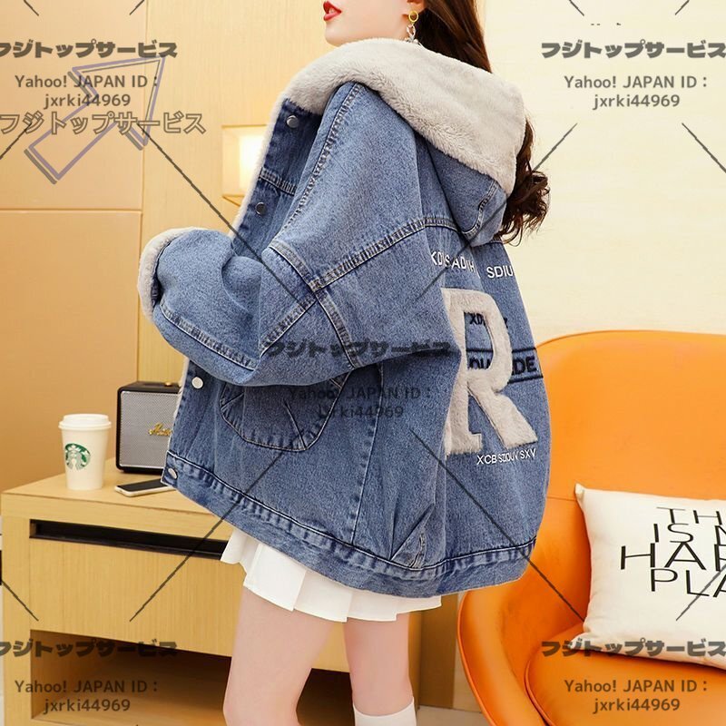 - 人気品デニムコート デニムジャケット ファーコート ジージャン着回し 裏起毛 レディース 秋冬 アウター ボアブルゾン フード付き 防寒