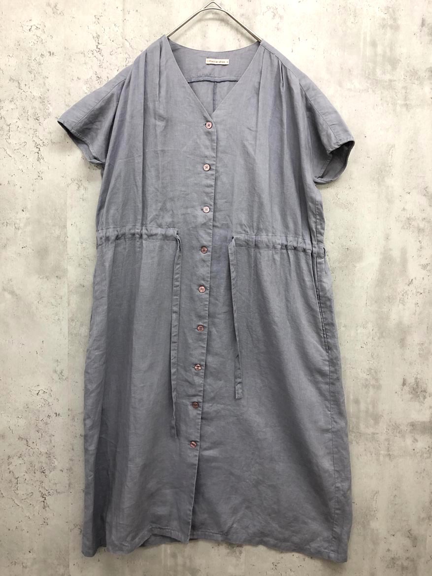 > ゆうパケットOK liflattie ships リフラッティシップス リネン フロント ボタン ワンピース sizeS/ブルー系 ■◆ ☆ fdc3 レディース