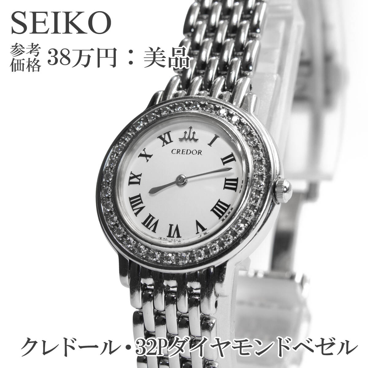 - 送料無料 セイコー 腕時計 レディース クレドール 1E70-0AV0 白 珍しい ヴィンテージ ロゴ マーク 32Pダイヤモンド 小型 小さめ 綺麗 X197