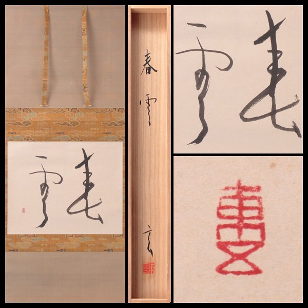 - ★【古美味】小林東五 自筆横物「春雲」軸装 茶道具 保証品 Q5Sh
