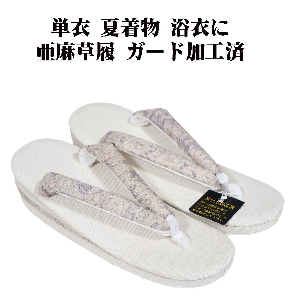 > 夏用 天然素材 亜麻 お洒落用 草履 鼻緒 紫・ベージュ 花柄 Fサイズ S10871 新品 単衣 夏着物 浴衣 送料込み
