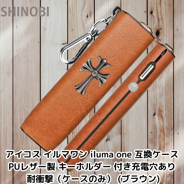 > アイコス イルマワン IQOS iluma one 互換ケース PUレザー製 キーホルダー 付き充電穴あり 耐衝撃(ケースのみ) (ブラウン)