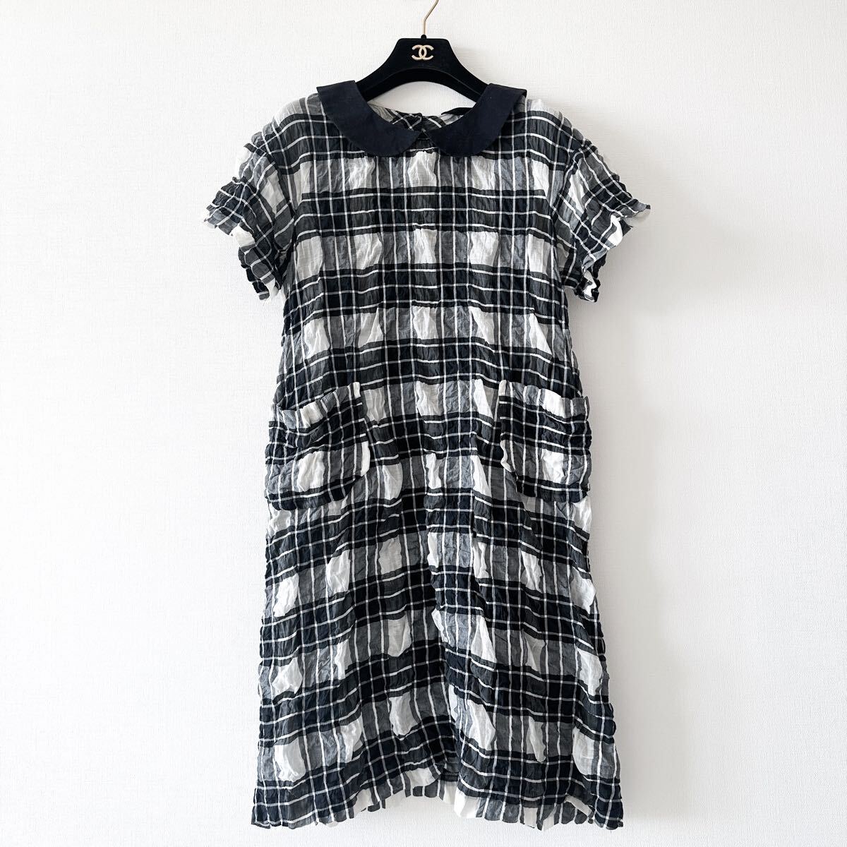 - tricot COMME des GARCONS トリココムデギャルソン / 丸襟 チェック ワンピース シルク混 縮絨 白 黒 ホワイト ブラック S