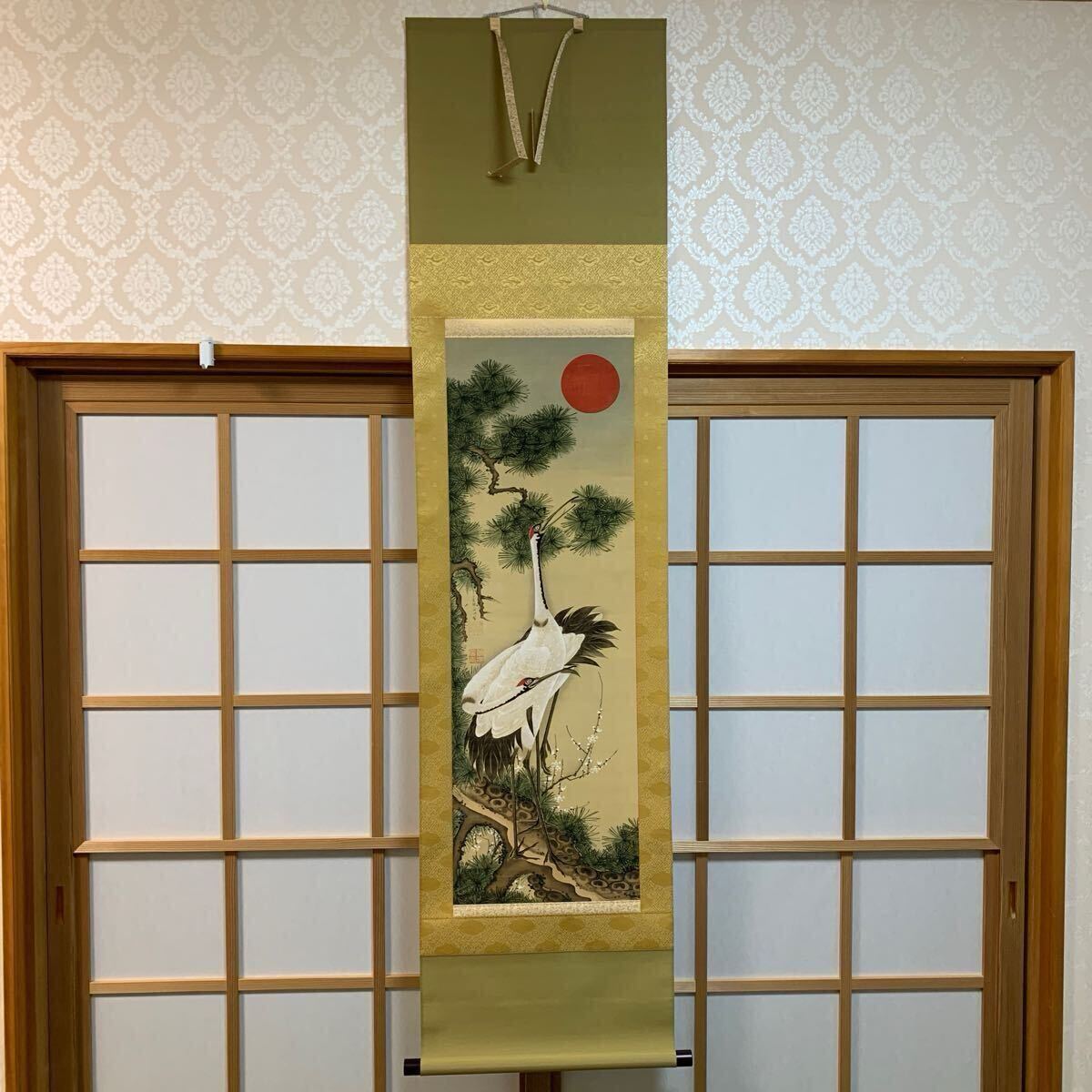 - 掛軸 模写 日松鶴風景画 木箱有り No.5-26
