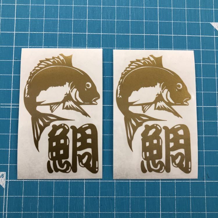 - 送料無料 鯛 釣り ステッカー 金色 2枚組クーラーボックス カーウィンドウ たい 海釣り タイ