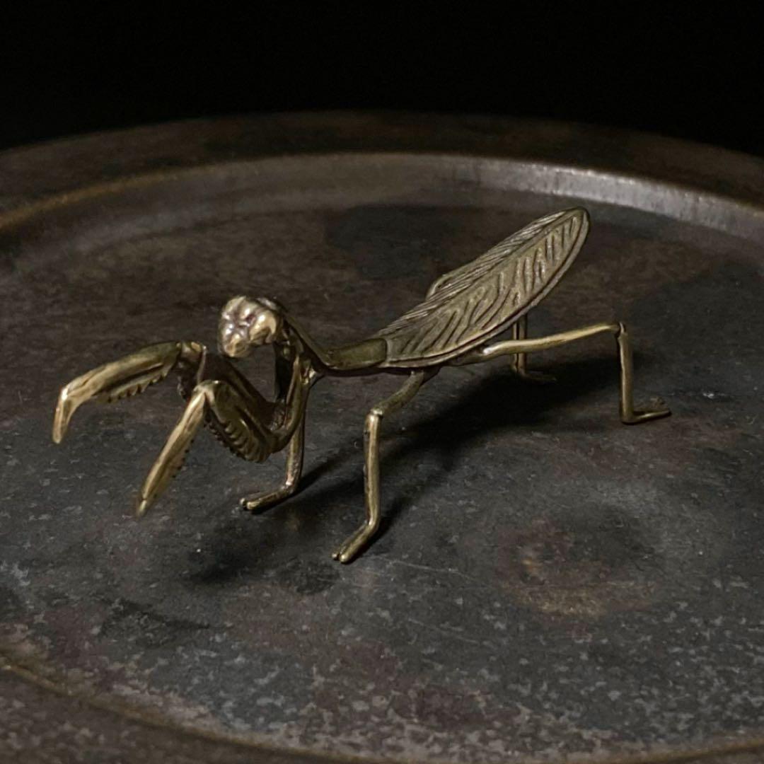 - 011 真鍮 置物 カマキリ ビンテージ 風水 開運 金運 昆虫 ヴィンテージ レトロ 真鍮製 置き物 オブジェ アンティーク ハンドメイド 虫