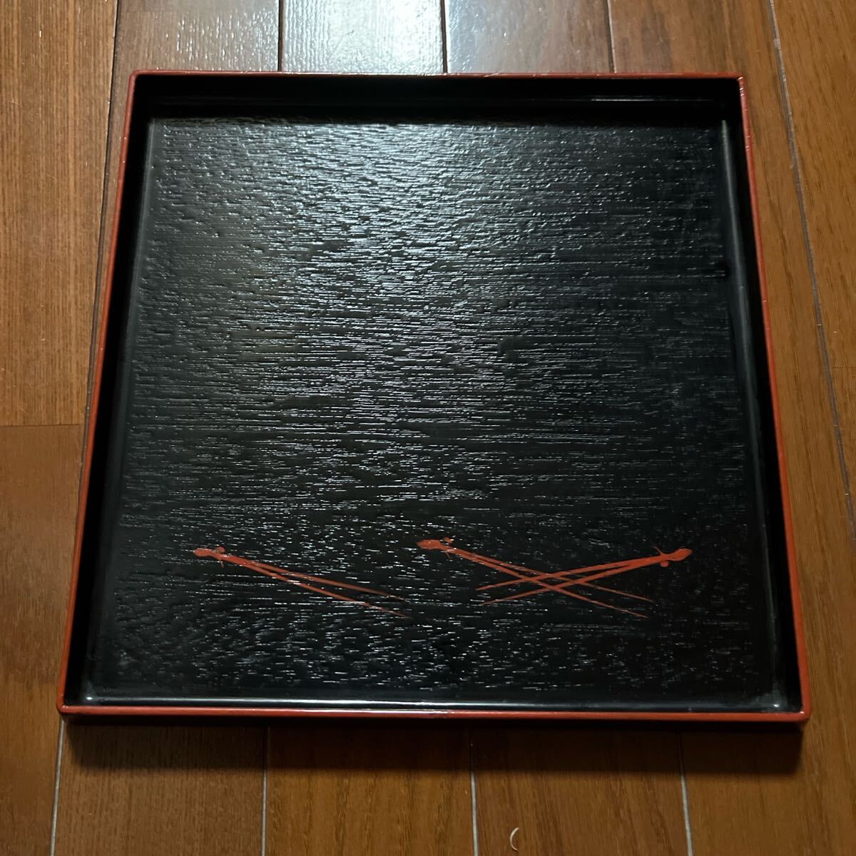 - 黒と赤の漆塗りのシンプルなトレイ、 お盆