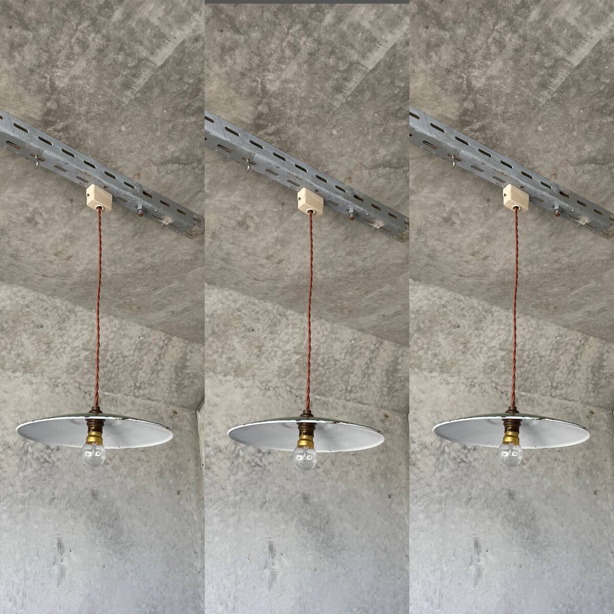 - 3個セット!フランス アンティーク ホーロー 吊り下げ ランプ カフェ 古民家