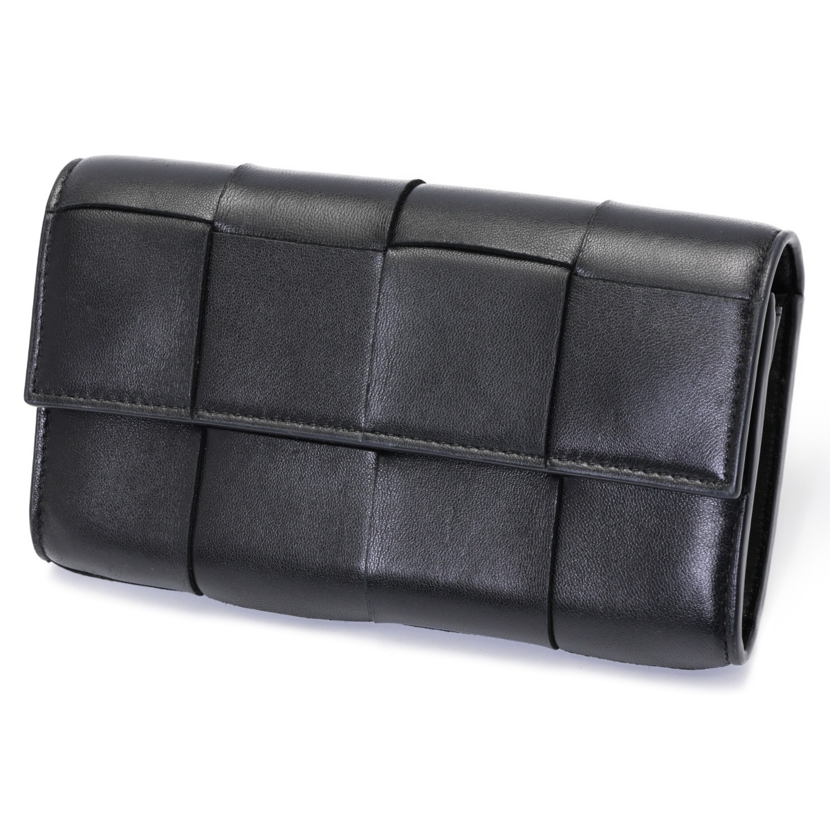 - ボッテガヴェネタ カセット ラージ フラップ ウォレット 667433 イントレチャートレザー ブラック 【中古】S-157448 値下げ
