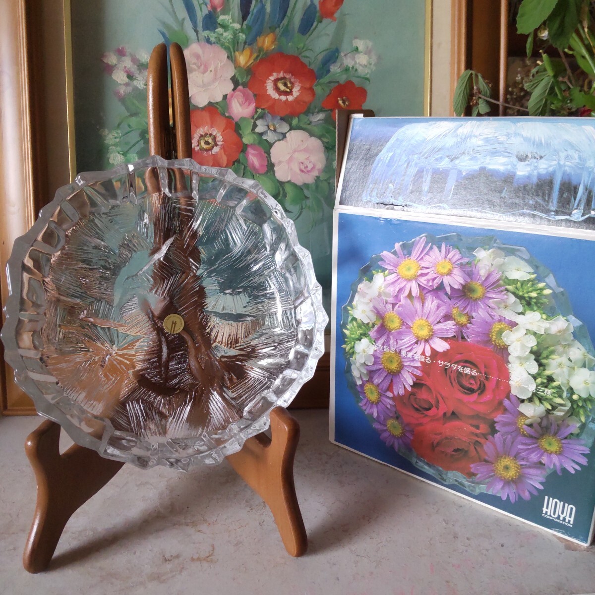 > HOYAガラス盛り皿サラダ皿菓子器フル―ツ皿花皿メダカ鉢アッシュトレイ未使用箱付き日本製