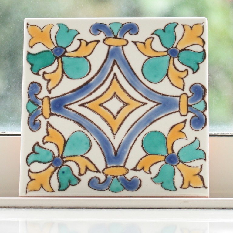> チュニジアタイル 4C 手描き タイル S チュニジア モロッコ テラコッタ