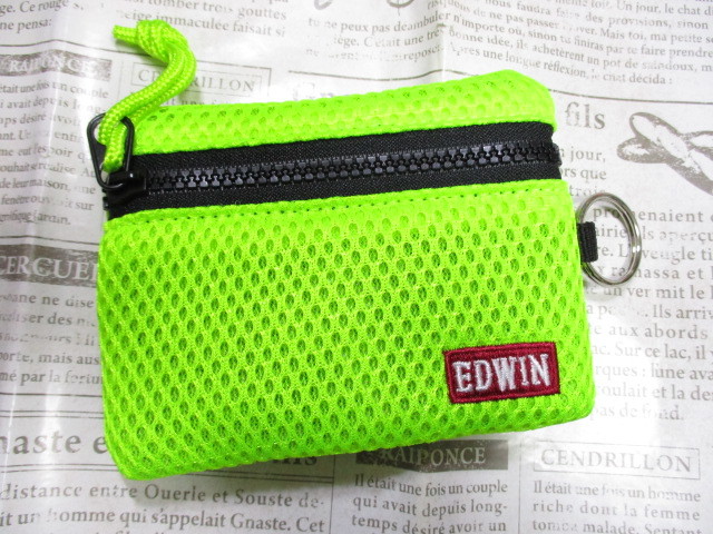 > 格安 新品 財布 レディース エドウィン EDWIN 二つ折り ミニ財布 小銭入れ コインケース カラフルメッシュデザイン ライトグリーン