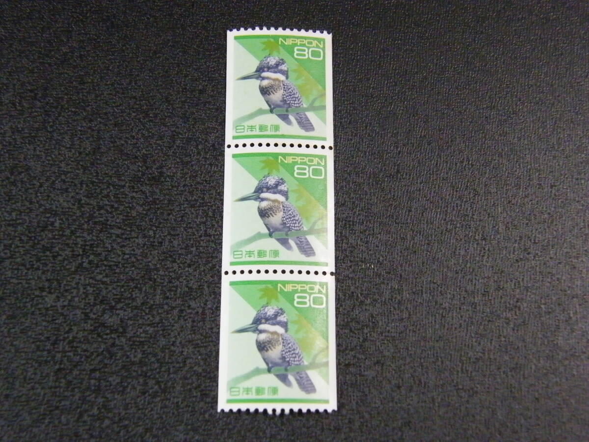 - コイル切手 ヤマセミ 80円 3連 未使用 1994年シリーズ