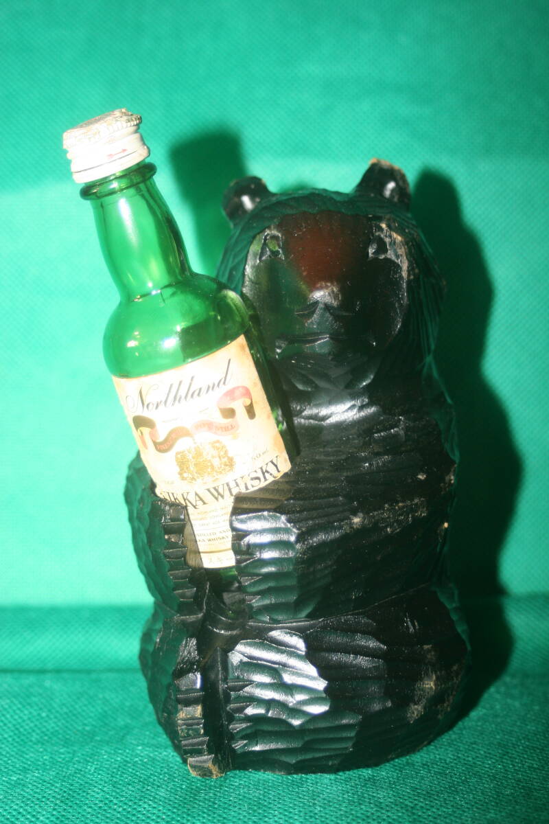 - 木彫り 熊 置物 ウイスキー空瓶 抱き 15cm×9.5cm×10.5cm