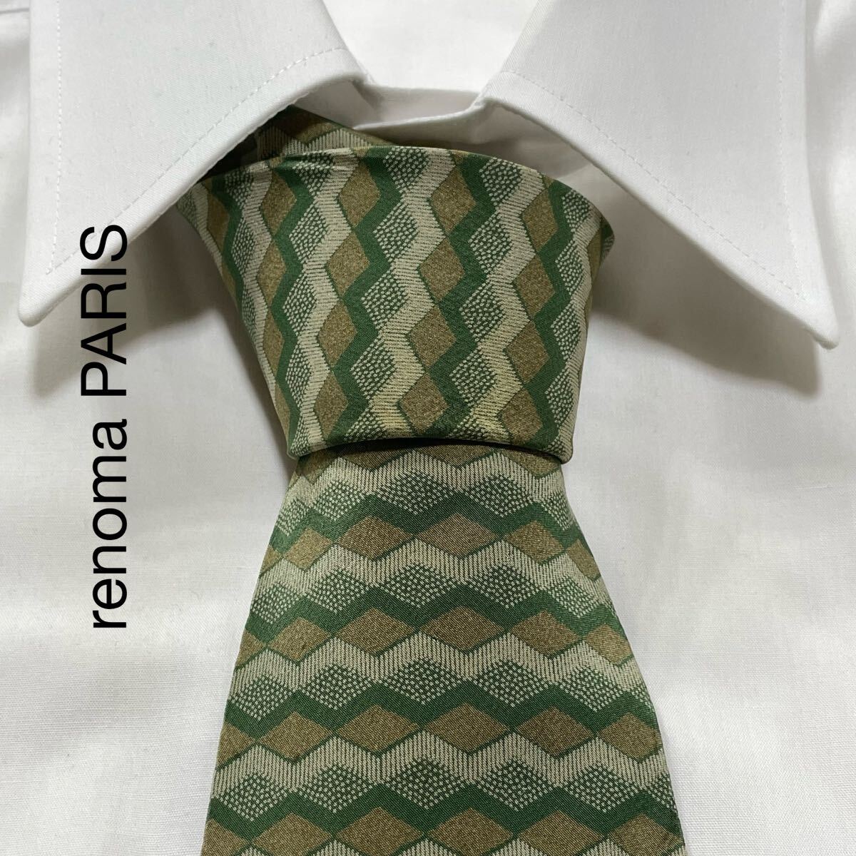 - renoma PARIS レノマパリス ギザギザ シルク ネクタイ イタリア製 グリーン カーキ ブラウン TG1382
