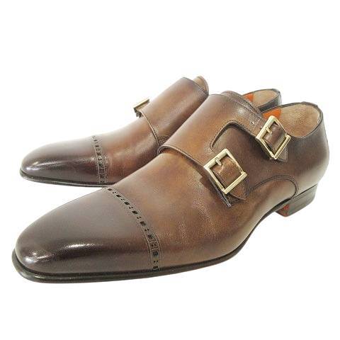 - サントーニ SANTONI 14798 ダブルモンク シューズ レザー ストレートチップ ドレスシューズ 革靴 5 24.2cm 茶 ブラウン メンズ