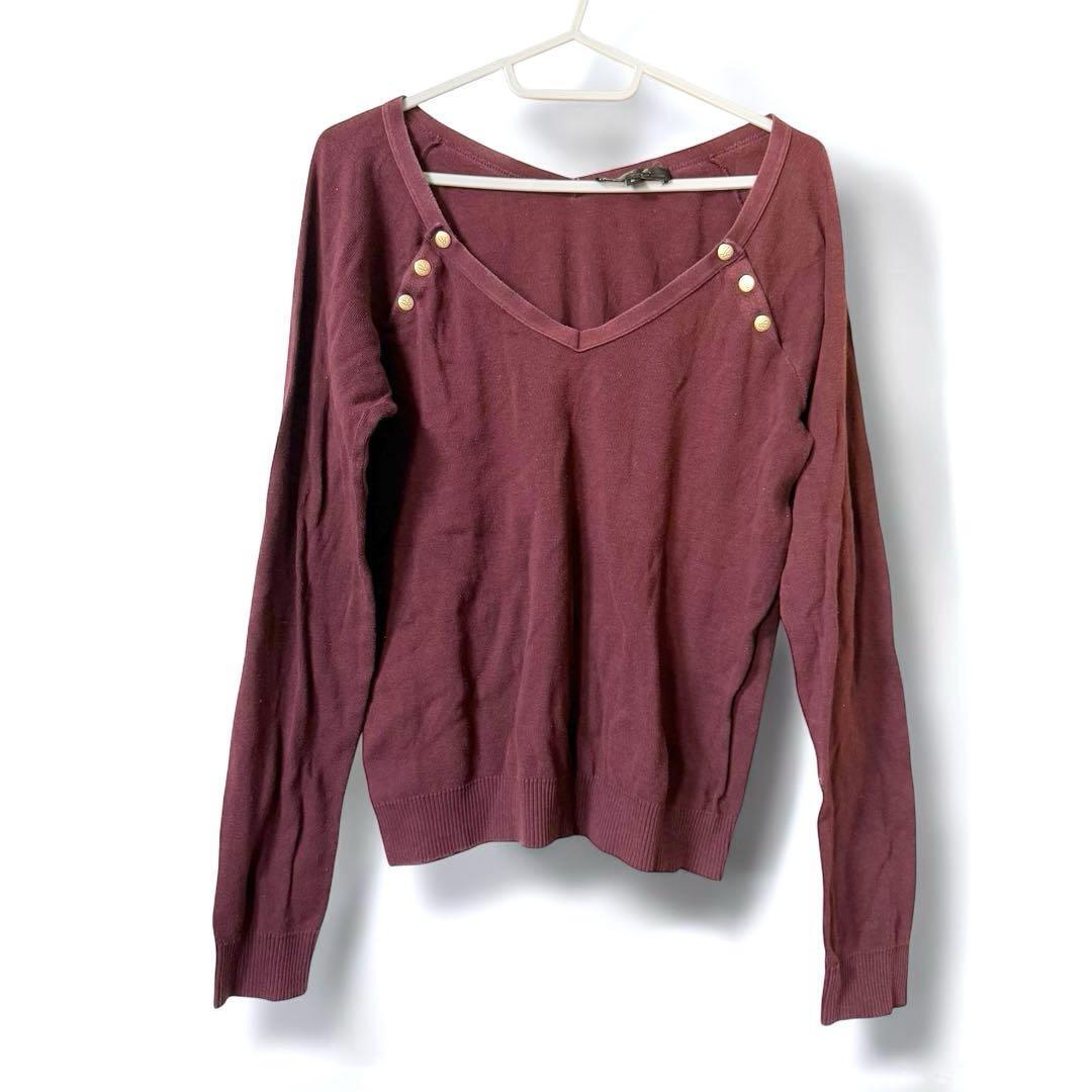 - アニエスベー カットソー ロゴボタン Vネック ボルドー 長袖 agnes b レディース シャツ ボタン コットン 綿 ブランド 服 3247