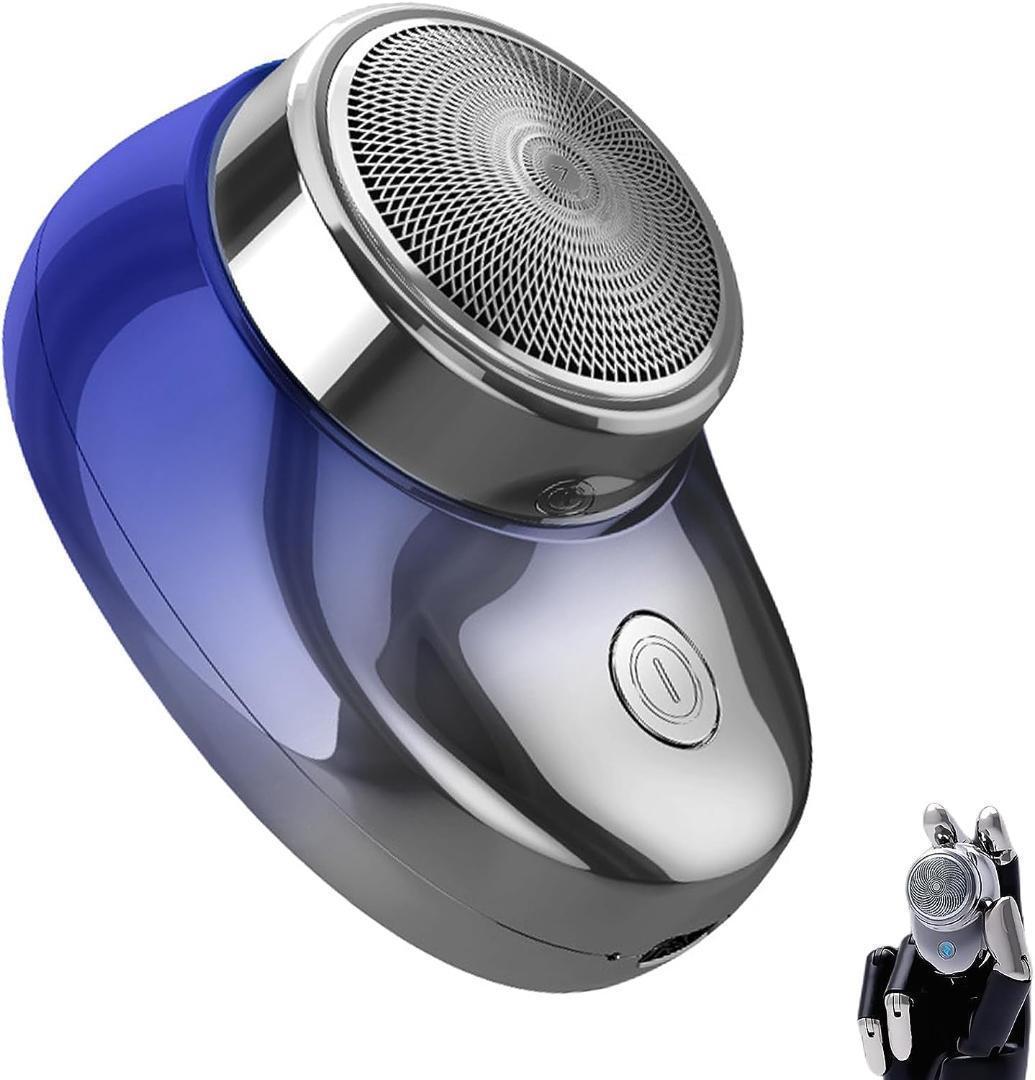 - 小型電動シェーバー ひげそり 高品質 アルミ 6枚刃 パワフル 防水 最新版 高速回転 持ち歩き 便利 ブルー 男性 贈り物 イケメン ケア