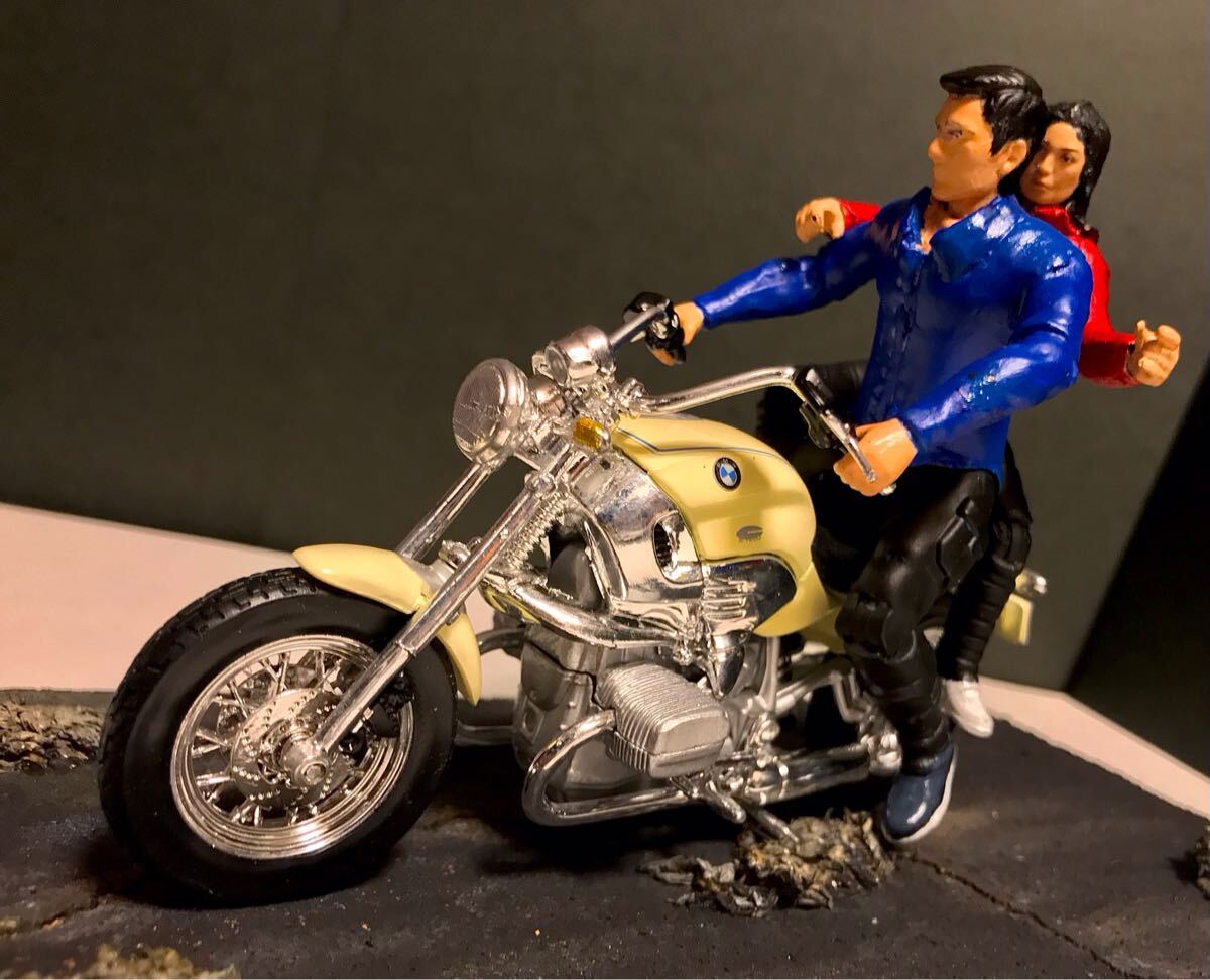 - 送料無料☆ 1/18 BMW R1200C と007風の男女スパイ ライダー カスタム フィギュア 道路付き