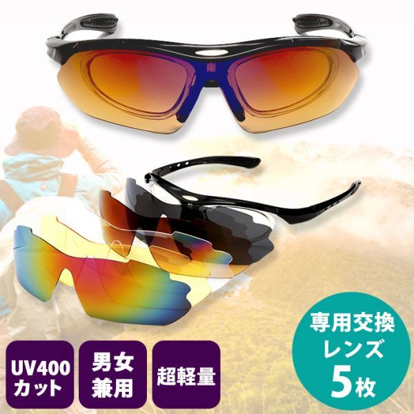 - スポーツサングラス 偏光レンズ サングラスフルセット専用交換レンズ5枚 UV400カット 超軽量 ユニセックス 紫外線防止 登山 ゴルフ