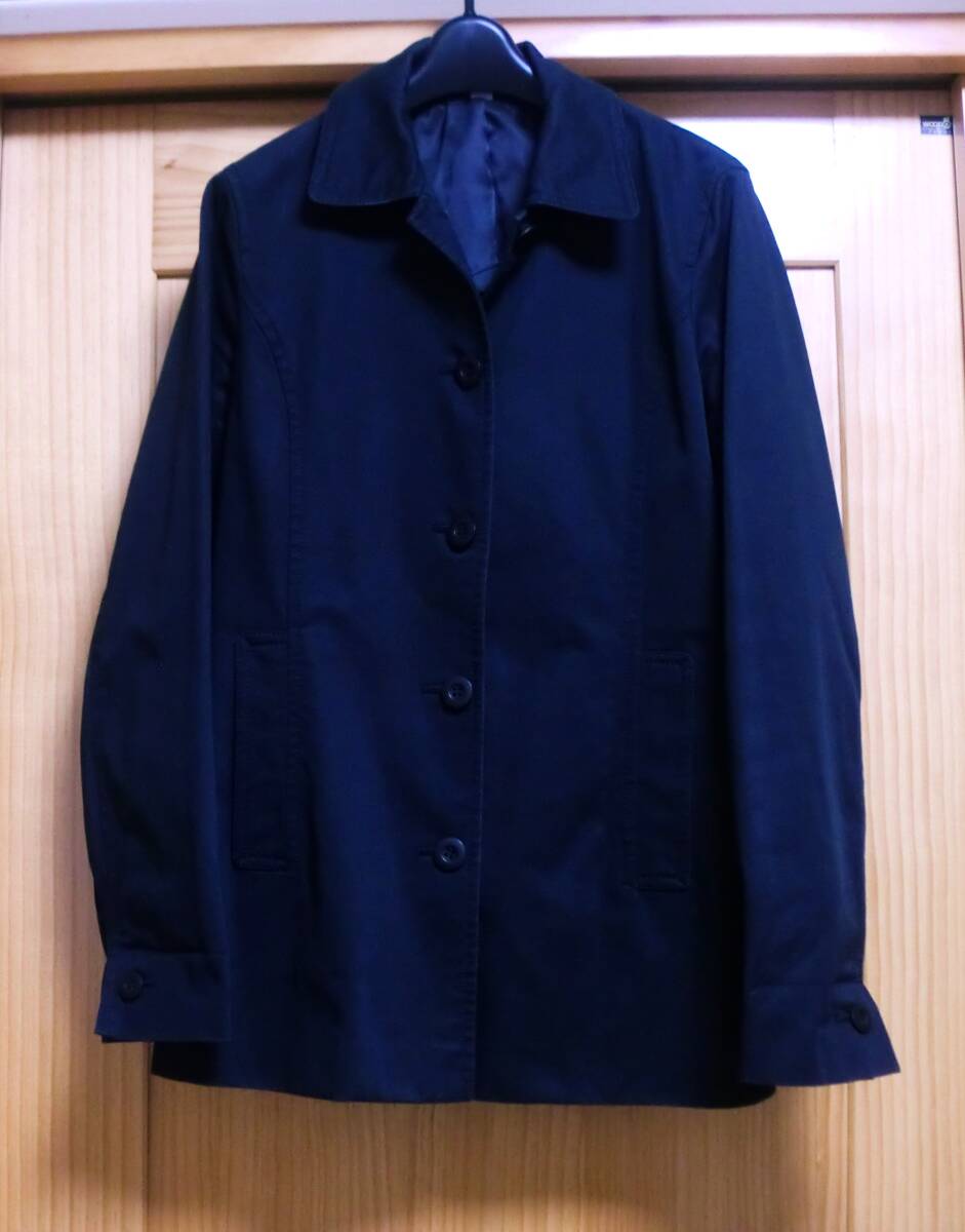 > レディースLサイズ(11号程) ユニクロ■黒ステンカラーコート■数回程度の着用品/冠婚葬祭、仕事用 袖裏地に擦れ傷あり