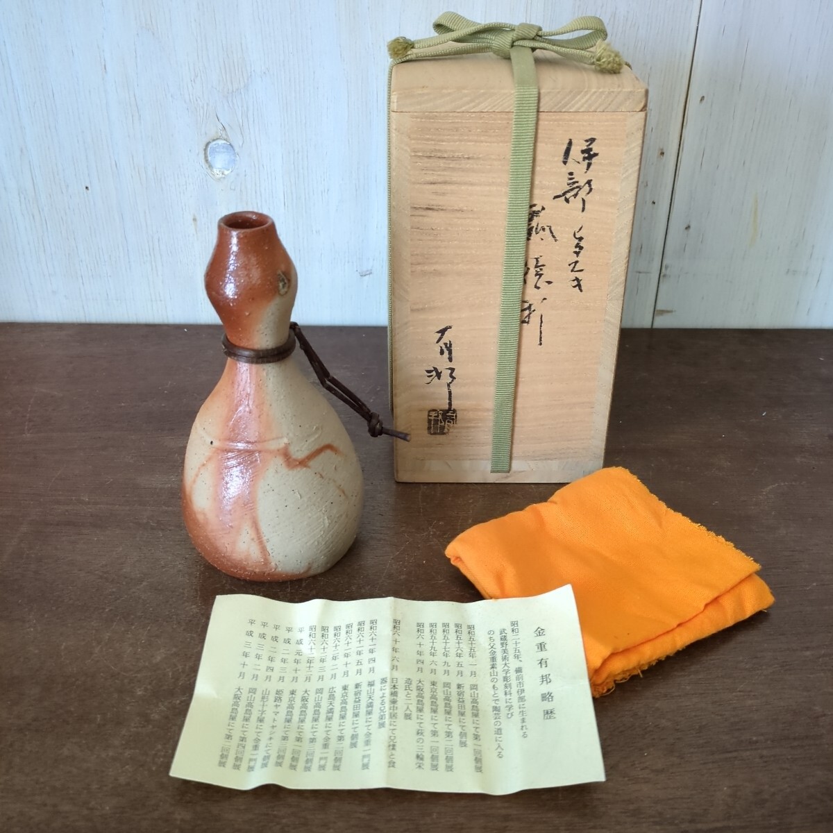 - 備前焼 金重有邦 瓢箪 緋襷 徳利 共箱 栞 酒器 父 金重素山