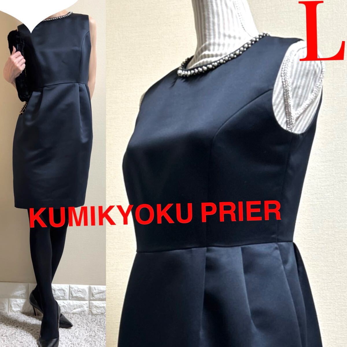 - 美品!KUMIKYOKU PRIER 組曲 クミキョク オンワード樫山 定価27,000円 フォーマル ワンピース パールビジュー 艶 サテン 濃紺 L