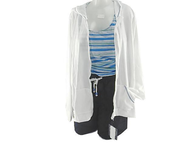 - レディース水着 4点セット ラッシュガード付き 大きいサイズ 8L ボーダー ホワイト