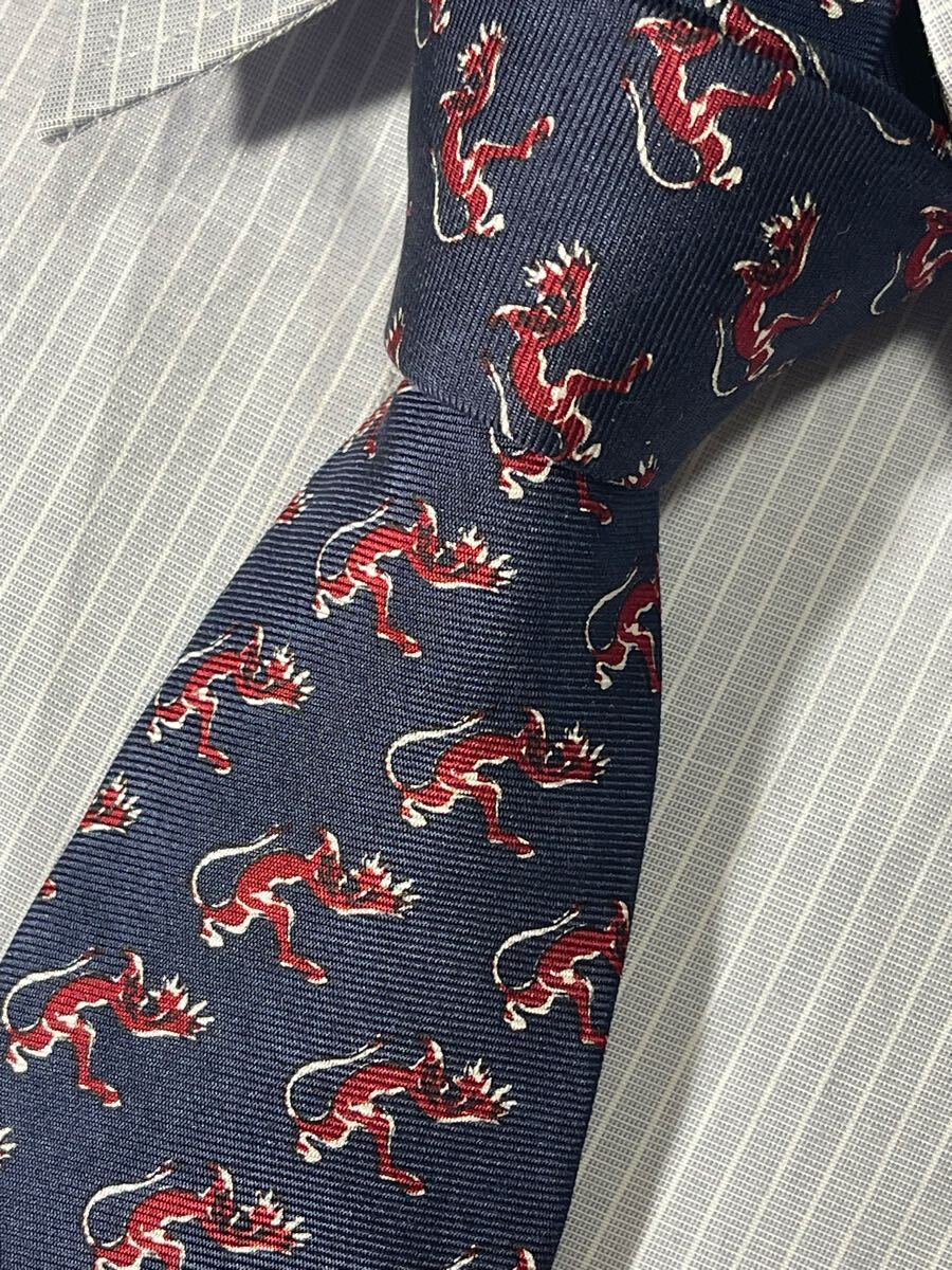 - ほぼ未使用 ″dunhill″ ダンヒル アニマル ネイビー ブランドネクタイ 505035