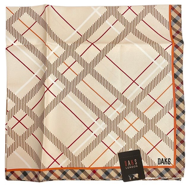 > 未使用 ダックス スカーフ ハンカチ シルク 100% チェック ブラウン レディース メンズ DAKS LONDON 【中古】
