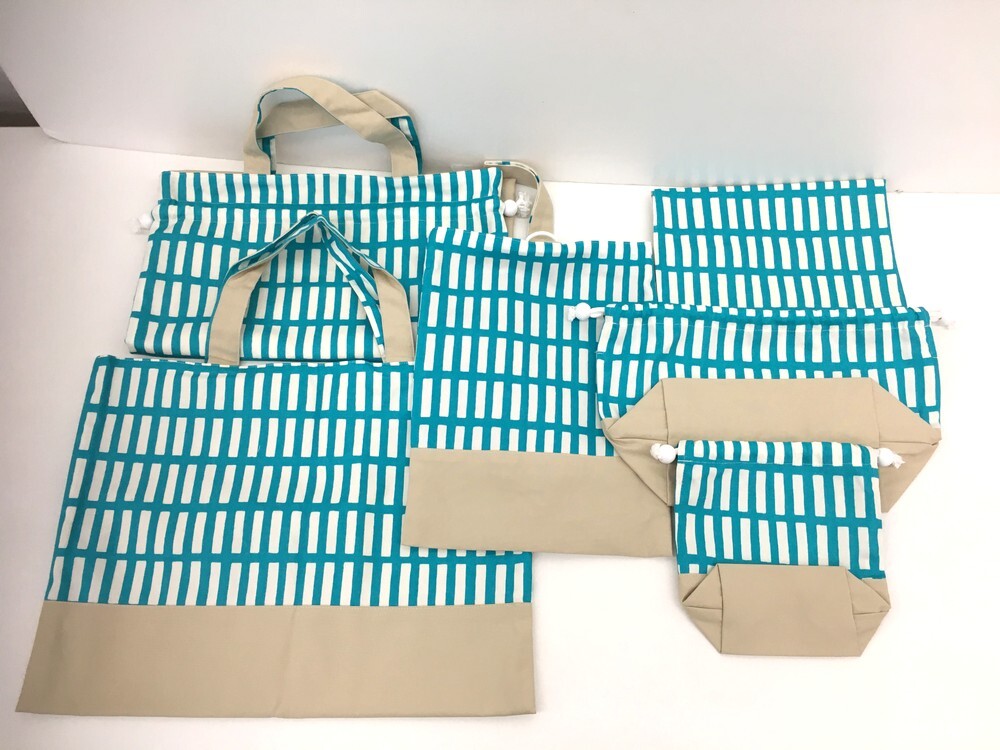 - 【同梱可】【60】未使用品 reicom 入学入園6点セット ライトブルー レッスンバック 上履入れ 体操着袋 ランチョンマット お弁当袋 コップ袋