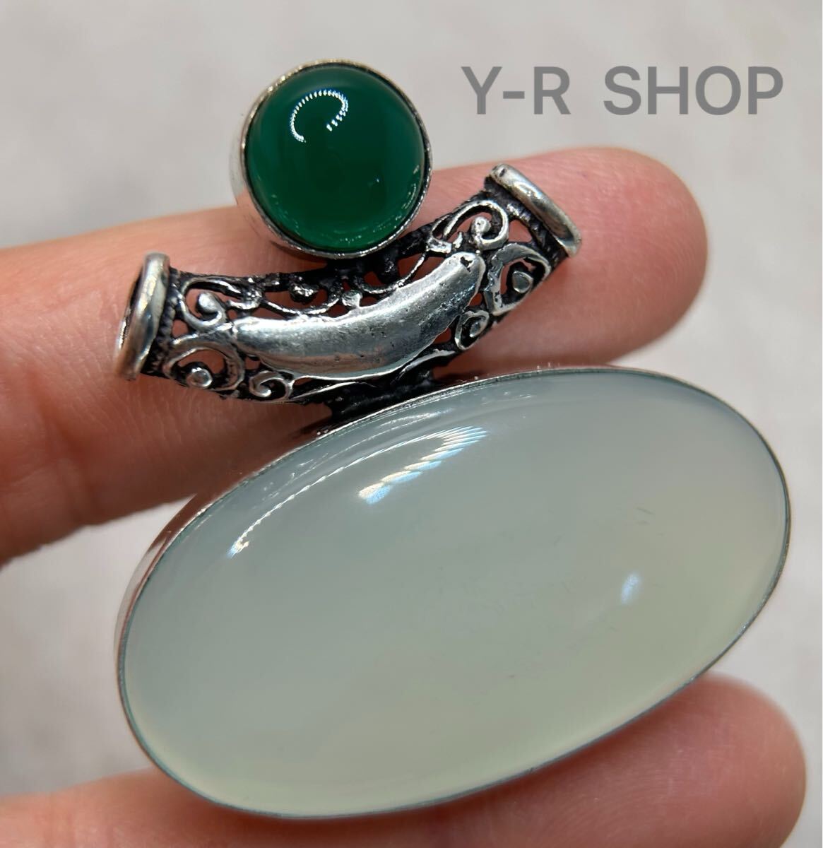 > 天然石★グリーンカルセドニーとグリーンオニキスのアンティーク調ペンダントトップ ★レディースメンズネックレスシルバー925刻印新品Y-R