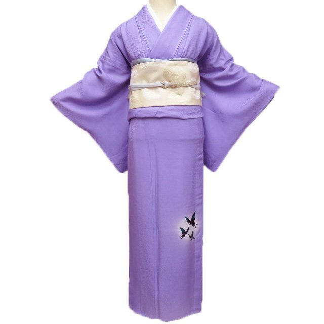 - 特選 付下げ 付け下げ 訪問着 着物 未使用 単衣 小谷輝鱗 落款 蝶の図 地模様 若紫色 身丈160cm 裄69cm M きもの北條 A1189-6