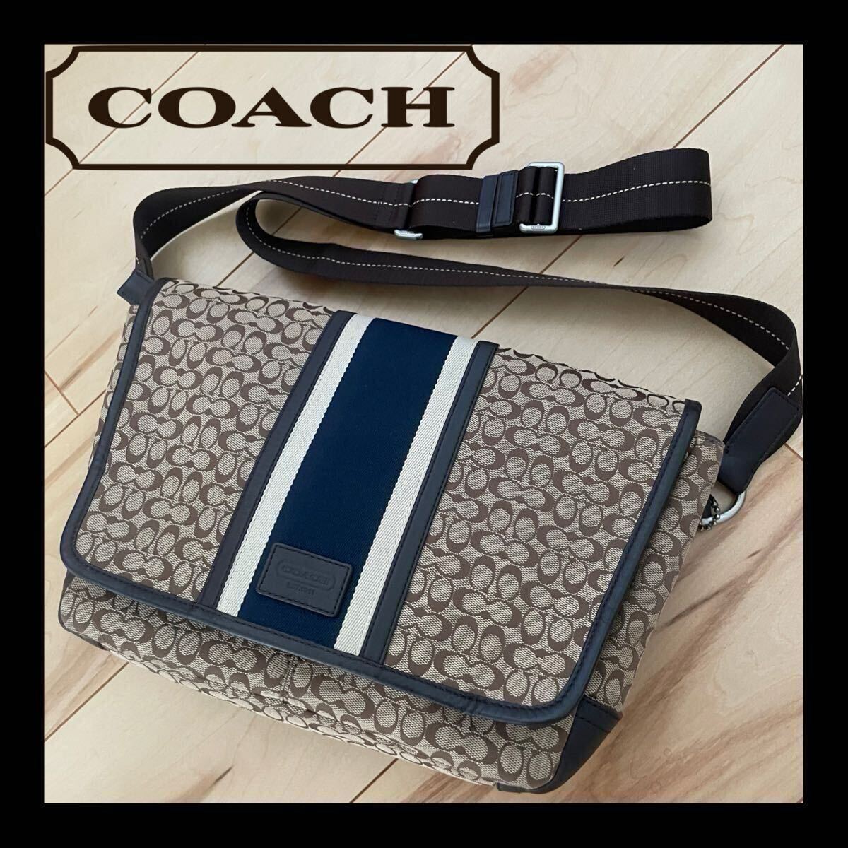 - 美品 COACH コーチ ショルダーバッグ 斜め掛け メッセンジャーバッグ キャンバス レザー F70805 シグネチャー
