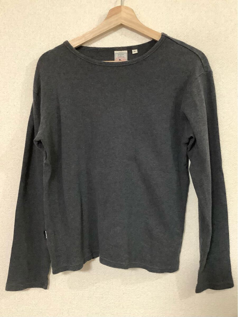 - AVIREX USA アビレックス 定番 リブ編み 長袖Tシャツ カットソー グレー カジュアル アメカジ 古着 L
