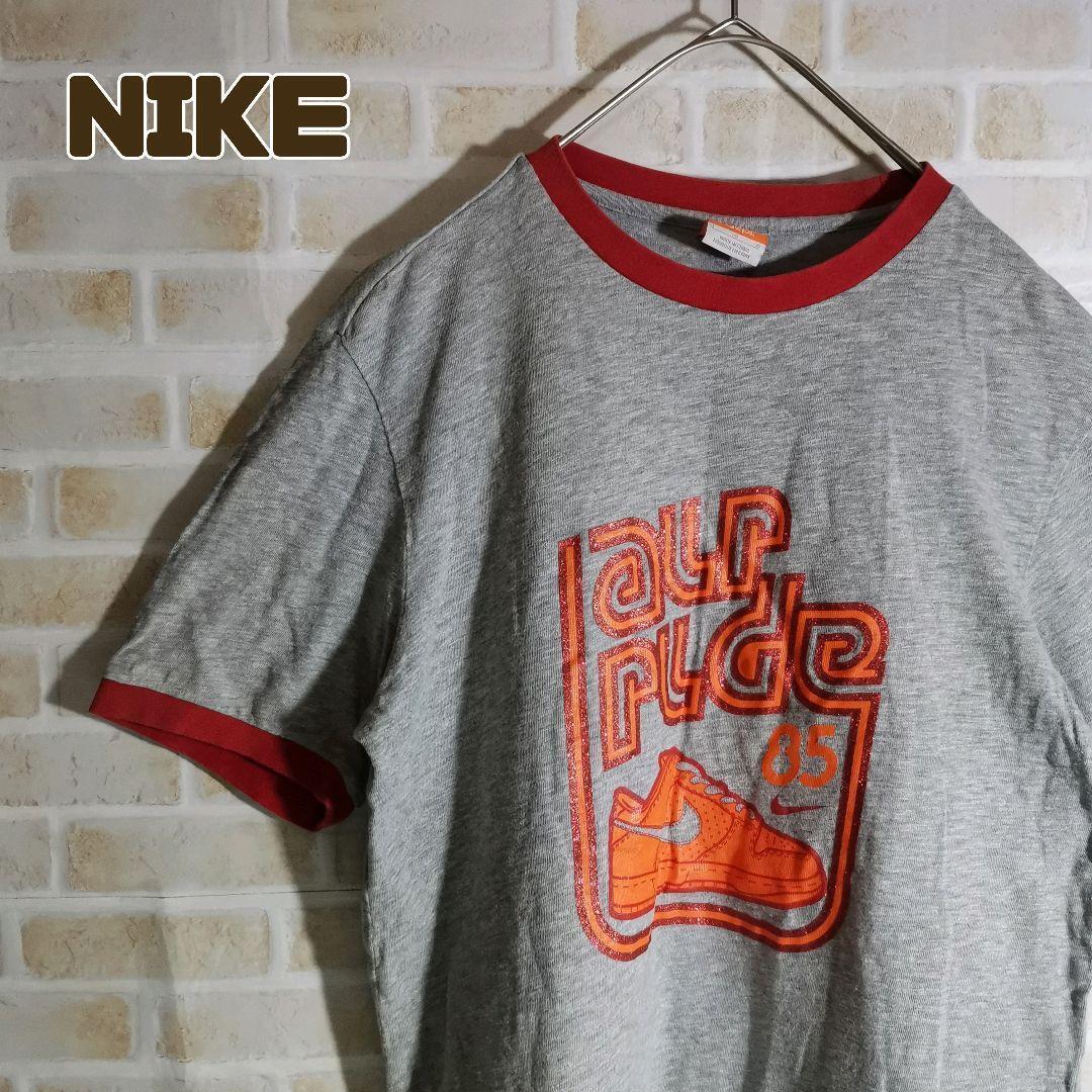 - NIKE ナイキ Tシャツ 半袖 グレー リンガー 赤