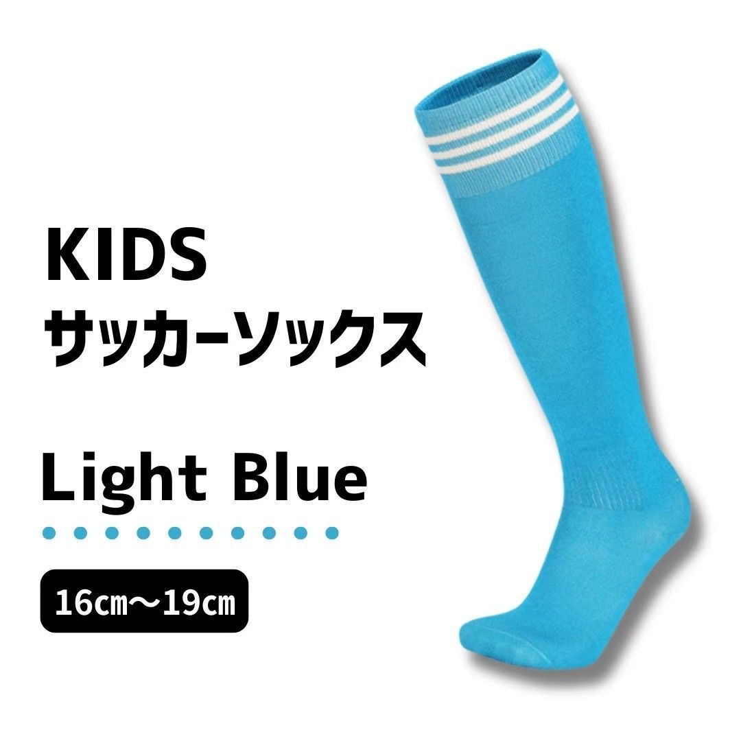 > サッカーソックス 【キッズサイズ】水色×白 3本ライン ジュニア ストッキング 16~19 靴下 子供用 スポーツソックス