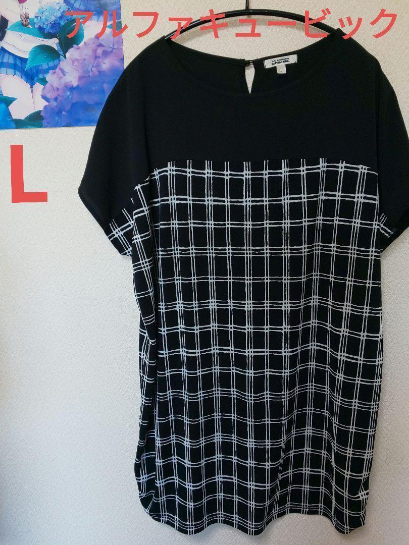 - ★アルファキュービック 格子柄 チュニック 黒 L オーバーサイズ