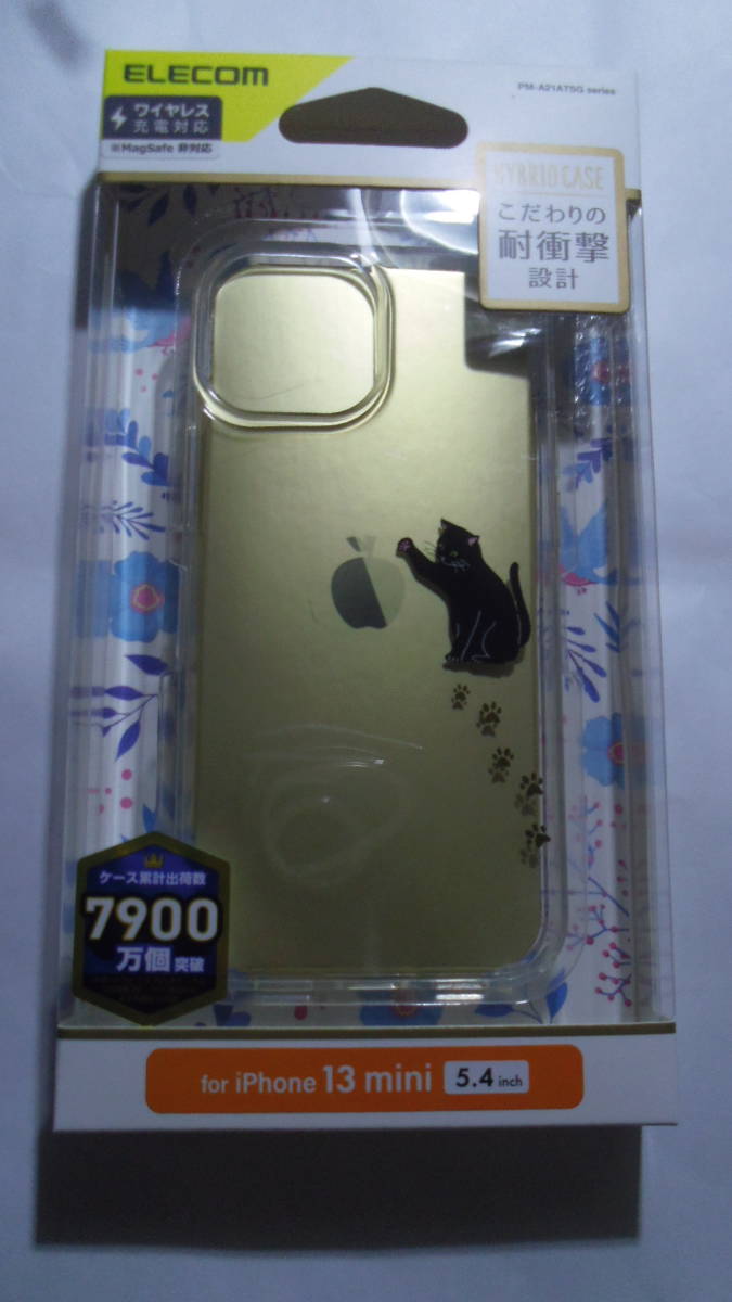> ELECOM iPhone 13 mini ハイブリッドケース クロネコ柄 TPU素材とポリカーボネート2種構造 四つ角にエアクッション設置 ワイヤレス充電対応