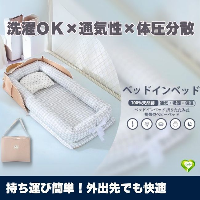 - 【持ち運び簡単!外出先でも快適】ベッドインベッド 携帯型 ベビー 新生児 赤ちゃん 折りたたみ コンパクト 洗える 帰省 人気 おすすめ