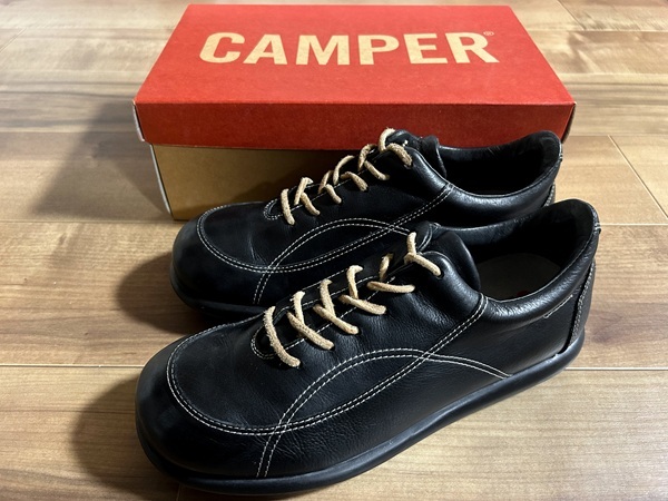 > 箱付き、良品、レア! CAMPER カンペール Pelotas ペロータス カジュアルシューズ 黒 ブラック 27cm EUR42 スニーカー 革靴 ブーツ スペイン