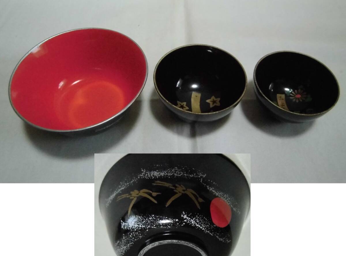 > ぐい呑み 3客 朱塗 短冊柄 金彩 銀縁と金縁 サイズ色々 合成漆器 お猪口 盃 杯 日本酒 酒器 工芸品 レトロ アンティーク