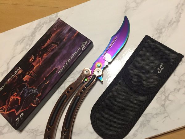 - 新品 バタフライナイフ レインボー 刃無し練習用