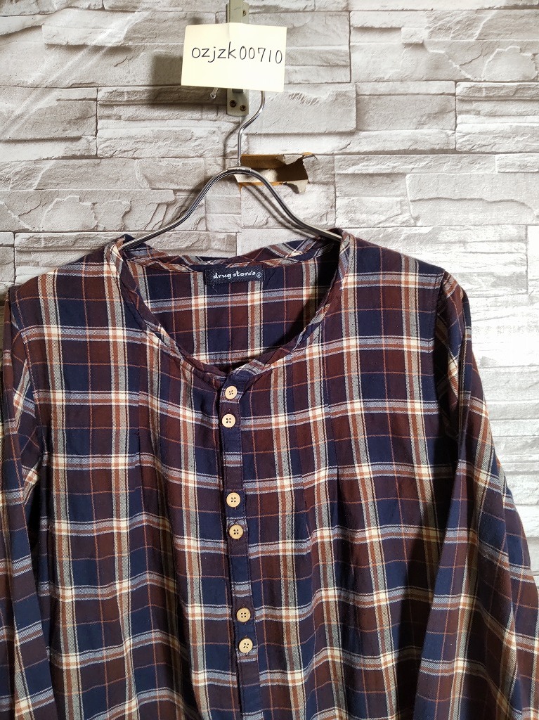 > women's I679 ドラッグストアーズ drug store's チェック 刺繍入り 長袖 シャツ ワンピース 4 ブラウン系 シャツワンピ