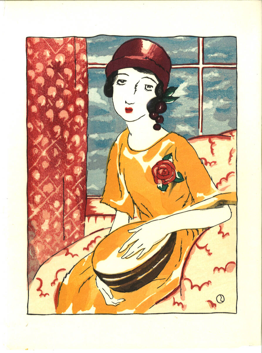 - 真作保証 竹久夢二 木版画 マンドリーヌ 初版 昭和中期 大正ロマンを代表する夢二式美人を是非木版画でご堪能下さい!!