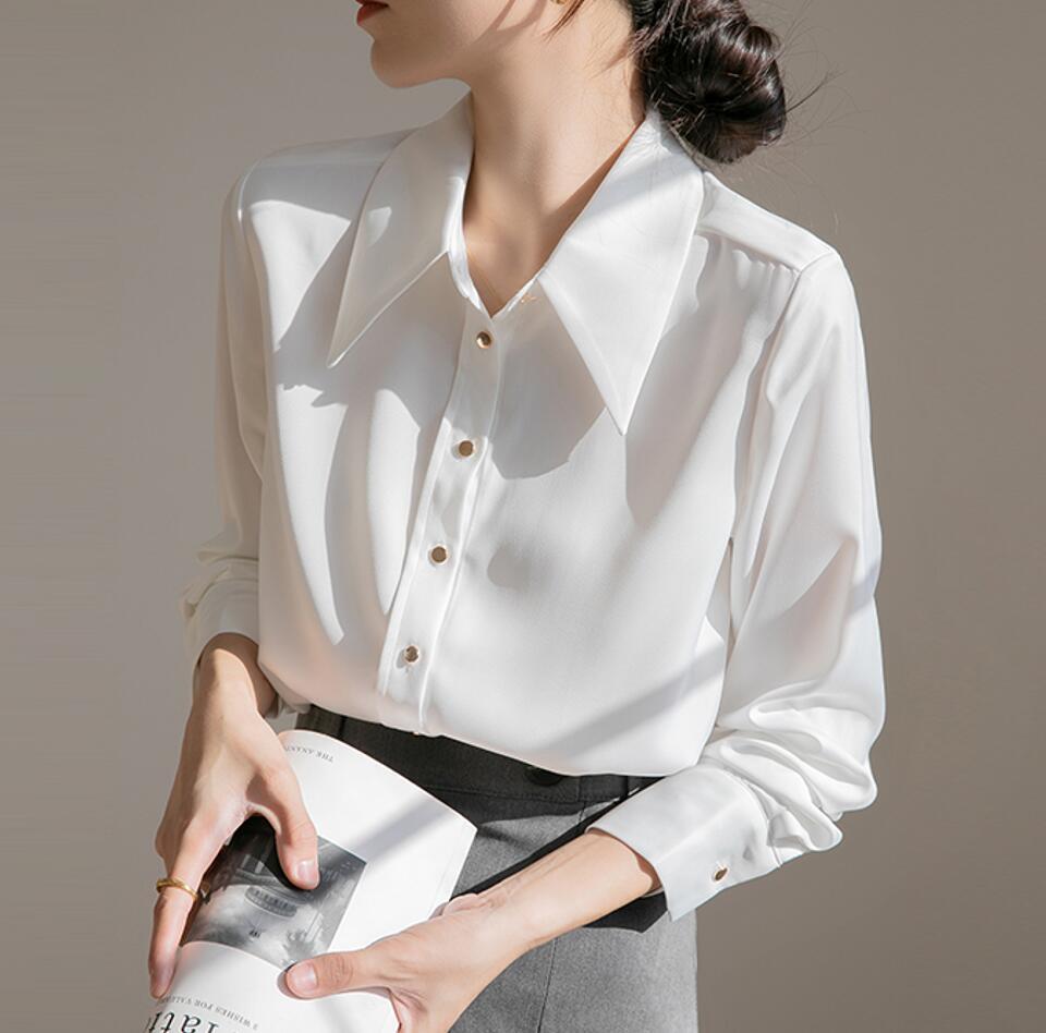 - 人気推薦/ブラウス 長袖 レディース サテンシャツ オフィス 事務服 シャツ 通勤 OL きれいめ 上品 大人 ビジネス シャツブラウス
