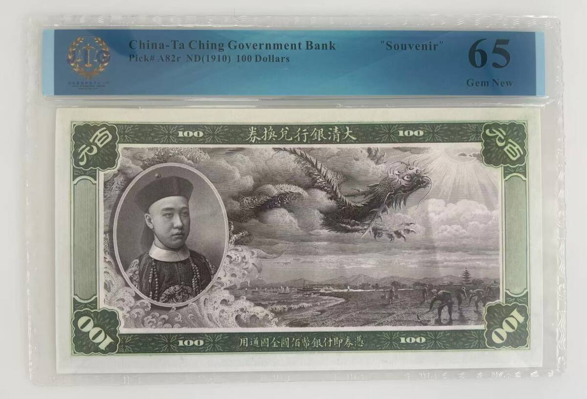 - 中国紙幣・大清銀行兌換券・100圓・監国摂政王愛新覚羅載の肖像・観賞幣
